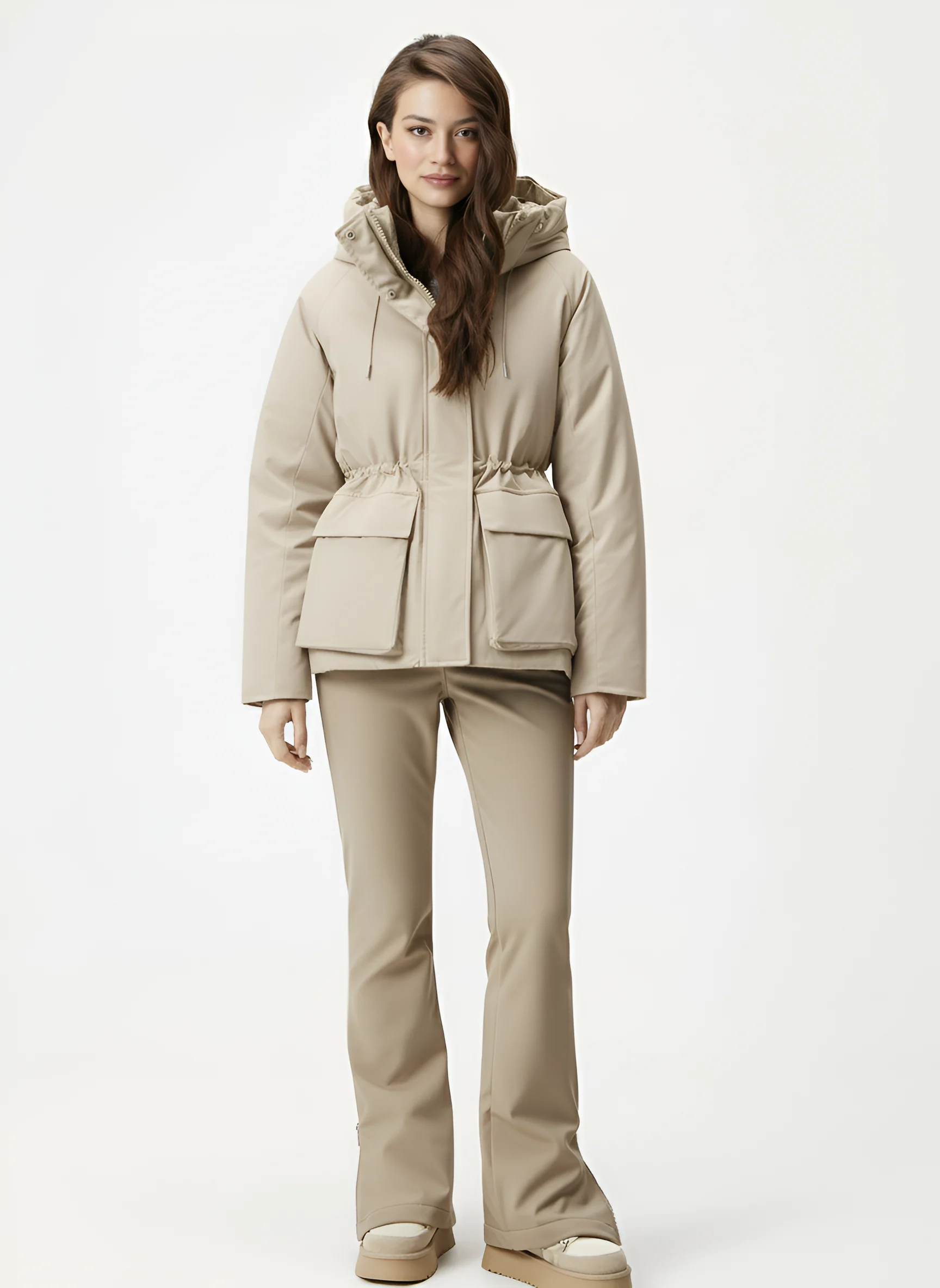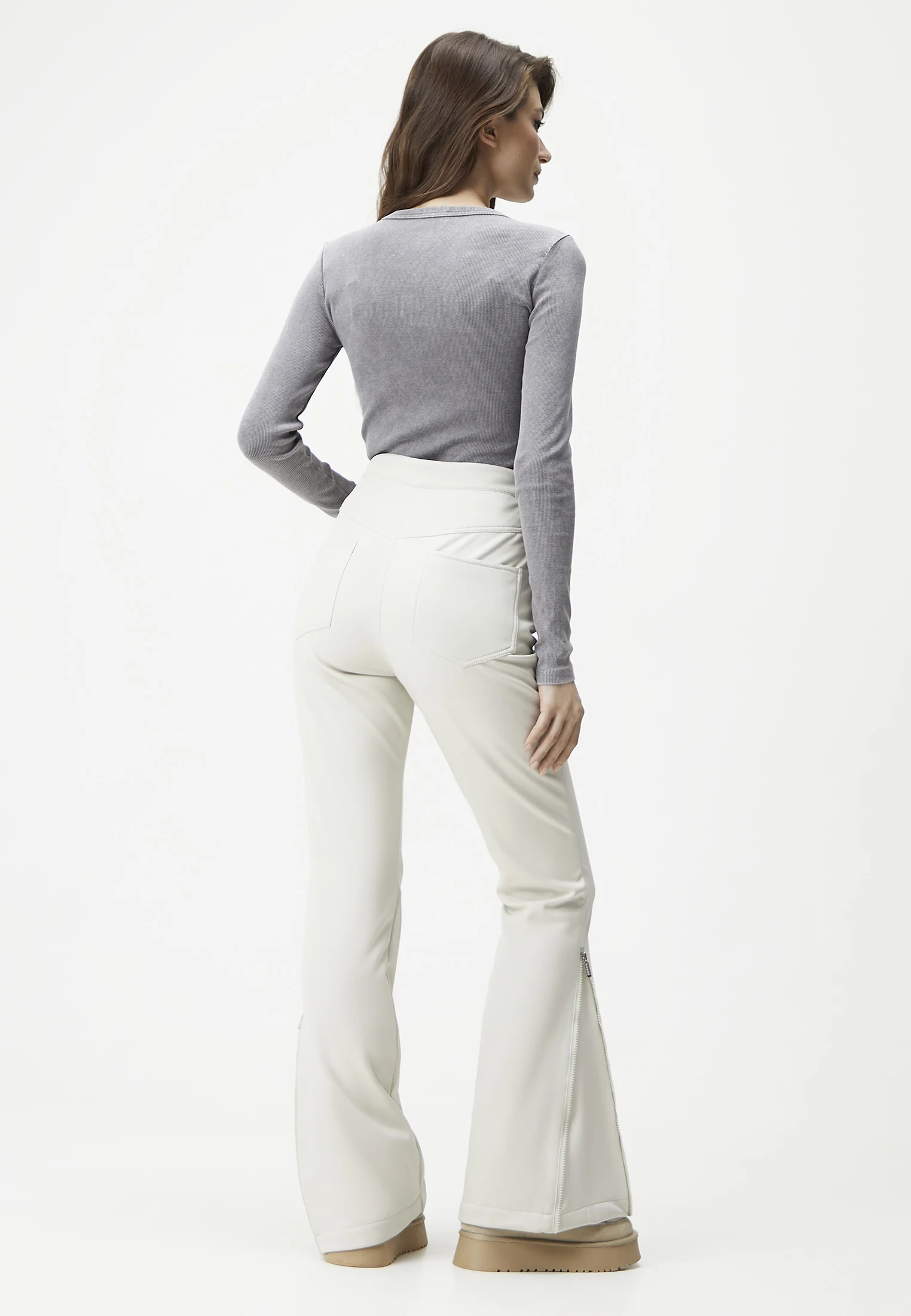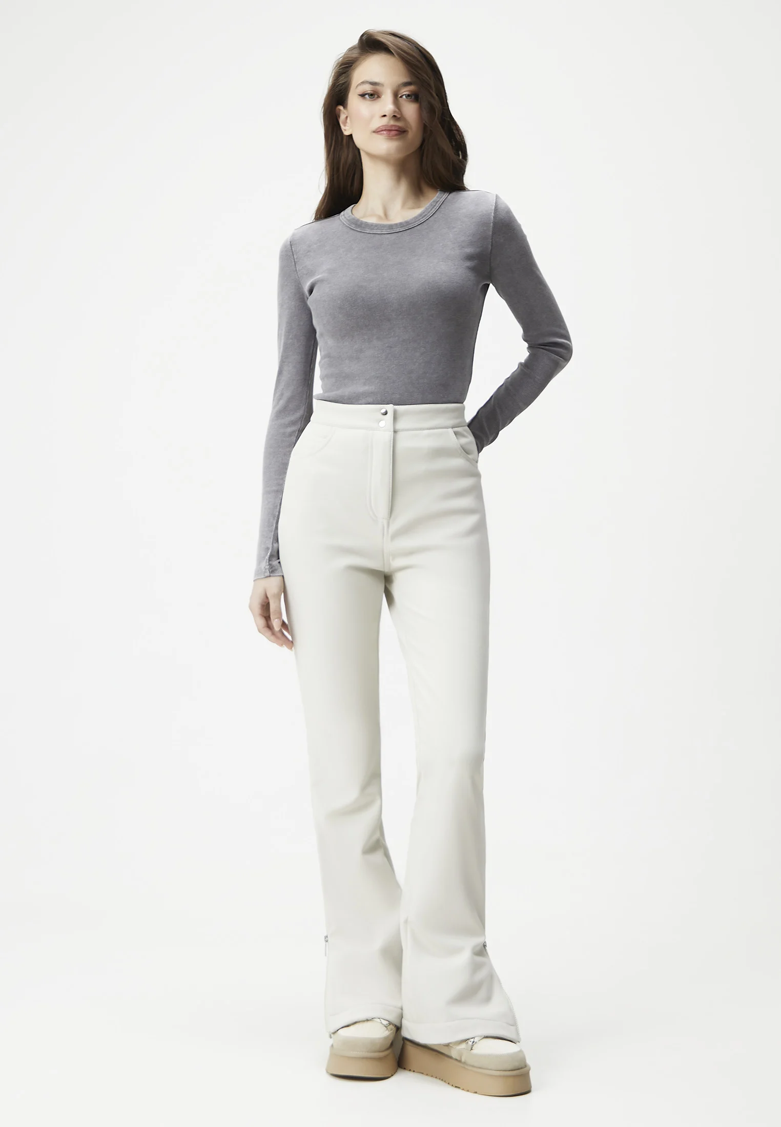 Брюки горнолыжные из тянущегося тонкого софтшелла , кроя клеш. Идеально прилегающие к фигуре с горнолыжной молнией.