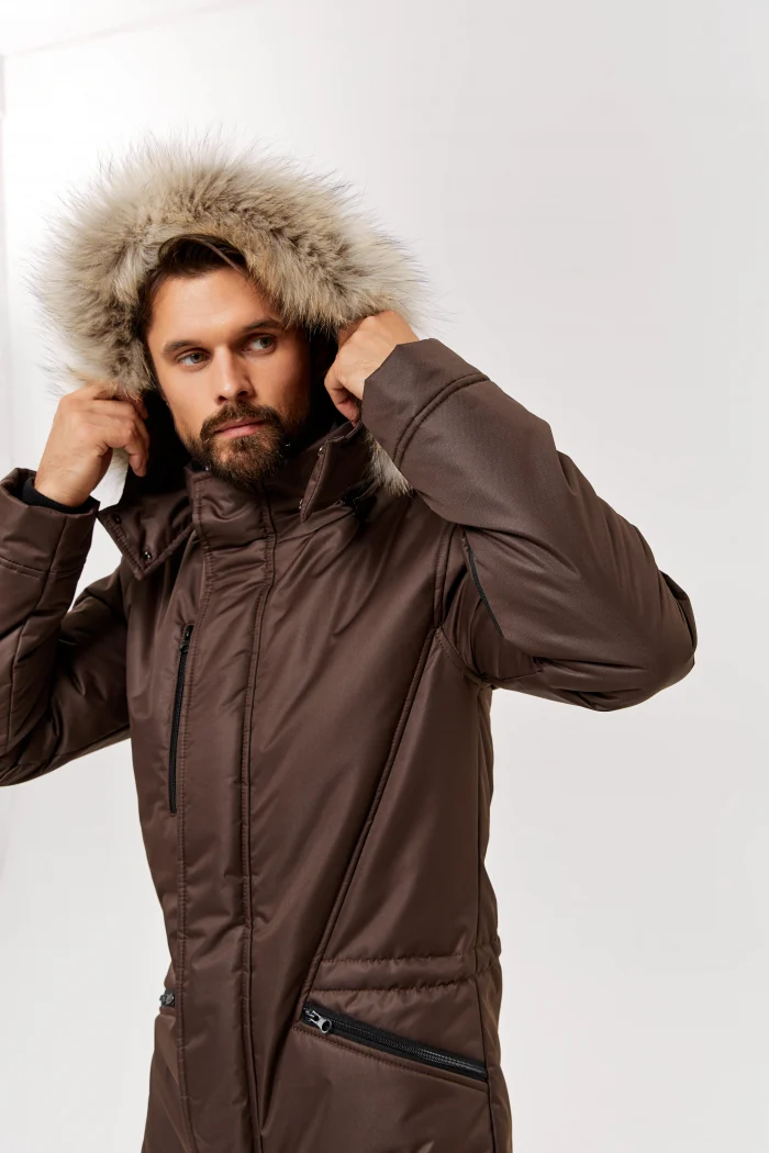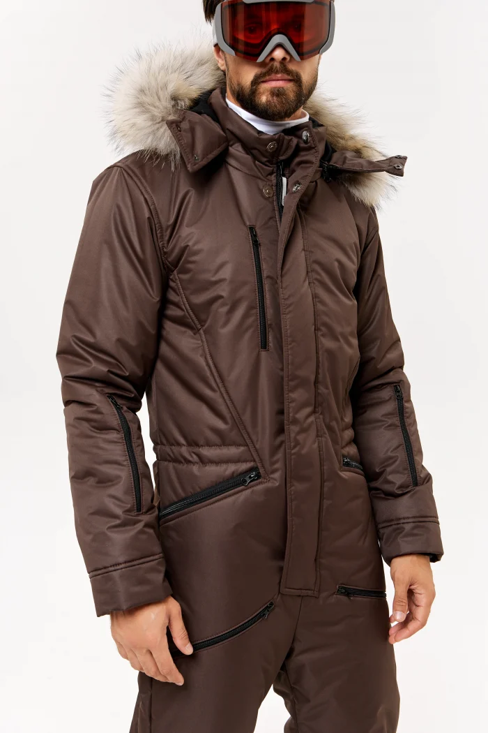 Забудьте о холоде и дискомфорте! Этот мужской комбинезон создан для настоящих мужчин, ценящих тепло, удобство и стильный внешний вид. В отличие от спортивных брендов конкурентов, мужской комбинезон от Kaambez One обладает изысканной элегантностью, которая позволяет ему одинаково уместно смотреться как на горном склоне, так и на городских улицах. Утеплитель холлофайбер 150 гр. надежно защитит вас от морозов, обеспечивая комфорт даже в самые суровые зимние дни. Кулиска на талии позволит подчеркнуть фигуру и создать идеальную посадку. Больше не нужно беспокоиться о пронизывающем ветре и снеге! Высокий воротник-стойка и ветрозащитная планка на магнитных кнопках обеспечат надежную защиту от непогоды. А отстегивающийся капюшон с мехом позволит вам регулировать уровень тепла в зависимости от погодных условий и обеспечить максимально простой уход за изделием.