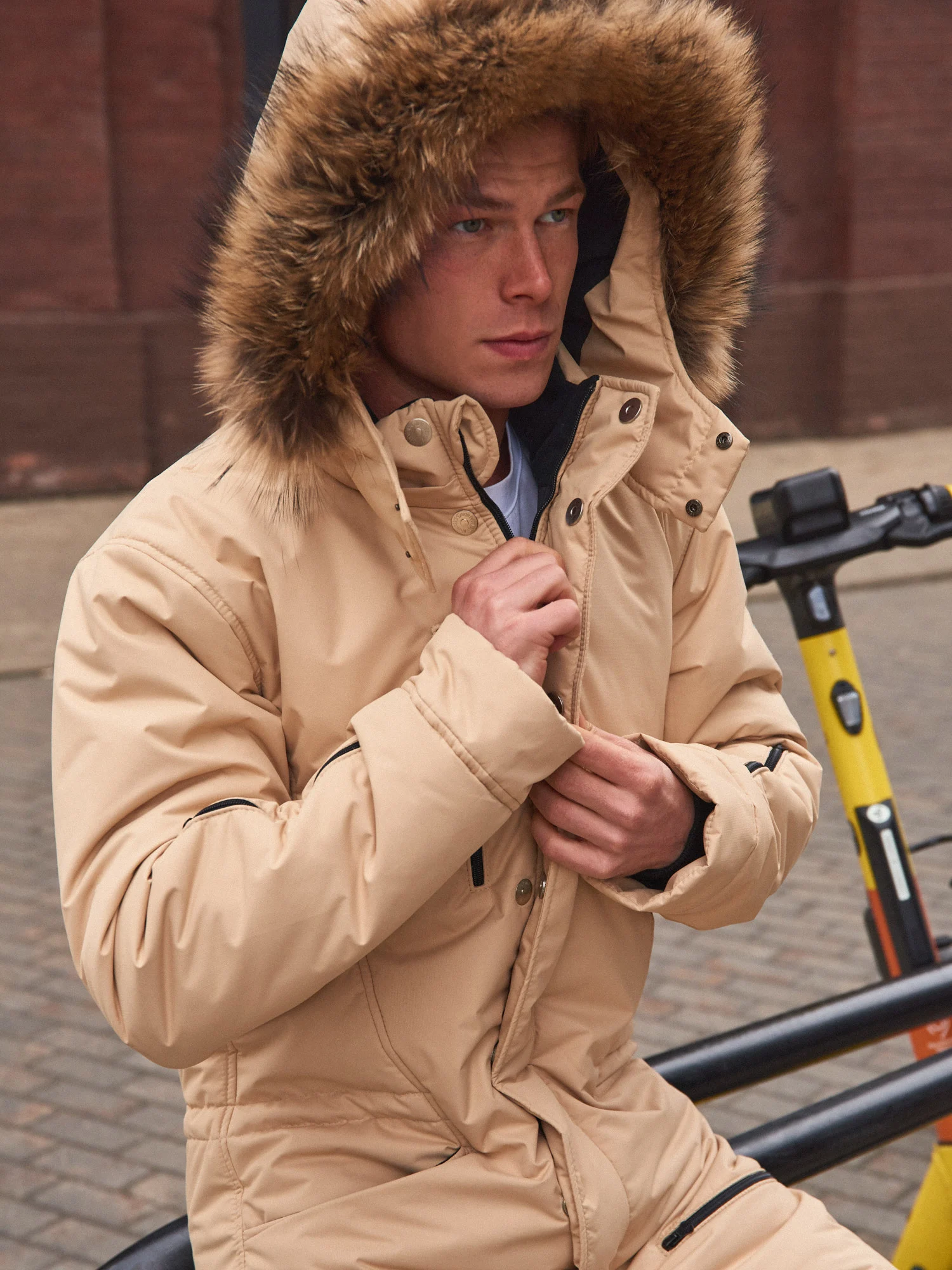 Забудьте о холоде и дискомфорте! Этот мужской комбинезон создан для настоящих мужчин, ценящих тепло, удобство и стильный внешний вид. В отличие от спортивных брендов конкурентов, мужской комбинезон от Kaambez One обладает изысканной элегантностью, которая позволяет ему одинаково уместно смотреться как на горном склоне, так и на городских улицах. Утеплитель холлофайбер 150 гр. надежно защитит вас от морозов, обеспечивая комфорт даже в самые суровые зимние дни. Кулиска на талии позволит подчеркнуть фигуру и создать идеальную посадку. Больше не нужно беспокоиться о пронизывающем ветре и снеге! Высокий воротник-стойка и ветрозащитная планка на магнитных кнопках обеспечат надежную защиту от непогоды. А отстегивающийся капюшон с мехом позволит вам регулировать уровень тепла в зависимости от погодных условий и обеспечить максимально простой уход за изделием.