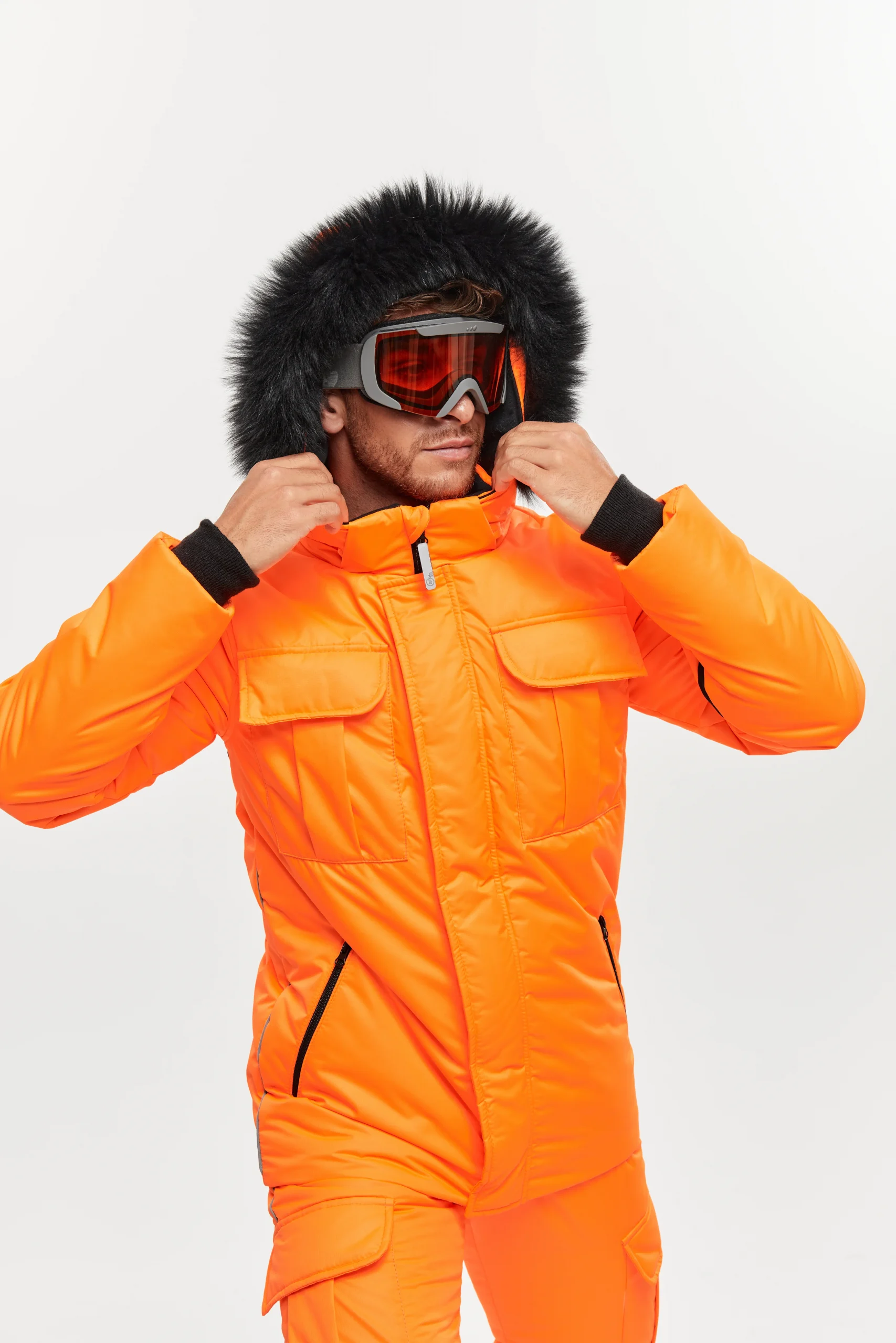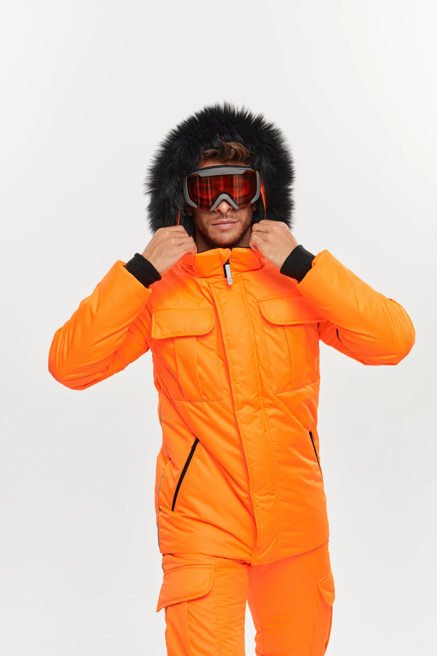 Забудьте о холоде и дискомфорте! Этот мужской костюм создан для настоящих мужчин, ценящих тепло, удобство и стильный внешний вид. В отличие от спортивных брендов конкурентов, мужской комбинезон от Kaambez One обладает изысканной элегантностью, которая позволяет ему одинаково уместно смотреться как на горном склоне, так и на городских улицах. Утеплитель холлофайбер 150 гр. надежно защитит вас от морозов, обеспечивая комфорт даже в самые суровые зимние дни. Кулиска на талии позволит подчеркнуть фигуру и создать идеальную посадку. Больше не нужно беспокоиться о пронизывающем ветре и снеге! Высокий воротник-стойка и ветрозащитная планка на магнитных кнопках обеспечат надежную защиту от непогоды. А отстегивающийся капюшон с мехом позволит вам регулировать уровень тепла в зависимости от погодных условий и обеспечить максимально простой уход за изделием.