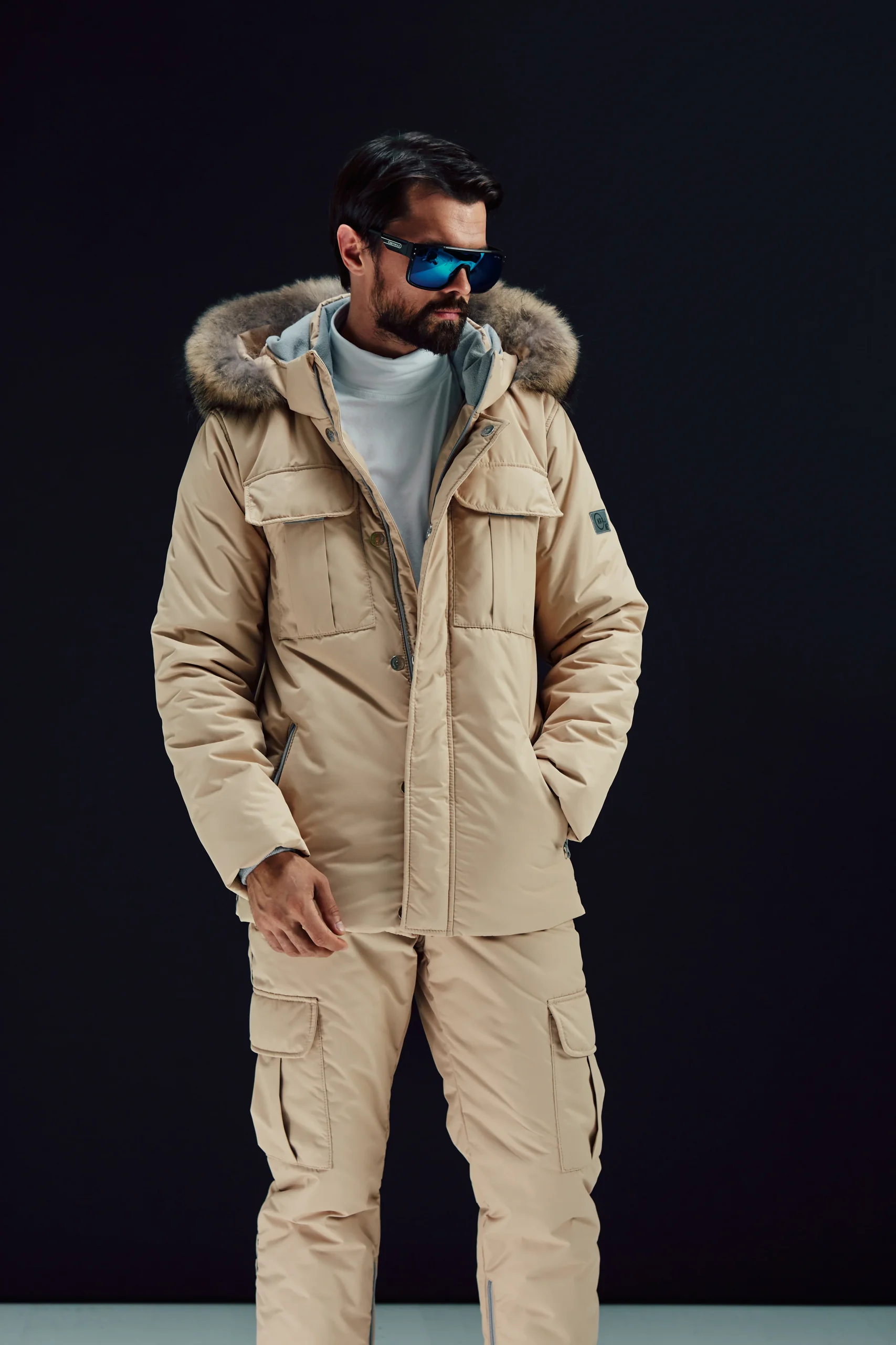 Забудьте о холоде и дискомфорте! Этот мужской костюм создан для настоящих мужчин, ценящих тепло, удобство и стильный внешний вид. В отличие от спортивных брендов конкурентов, мужской комбинезон от Kaambez One обладает изысканной элегантностью, которая позволяет ему одинаково уместно смотреться как на горном склоне, так и на городских улицах. Утеплитель холлофайбер 150 гр. надежно защитит вас от морозов, обеспечивая комфорт даже в самые суровые зимние дни. Кулиска на талии позволит подчеркнуть фигуру и создать идеальную посадку. Больше не нужно беспокоиться о пронизывающем ветре и снеге! Высокий воротник-стойка и ветрозащитная планка на магнитных кнопках обеспечат надежную защиту от непогоды. А отстегивающийся капюшон с мехом позволит вам регулировать уровень тепла в зависимости от погодных условий и обеспечить максимально простой уход за изделием.