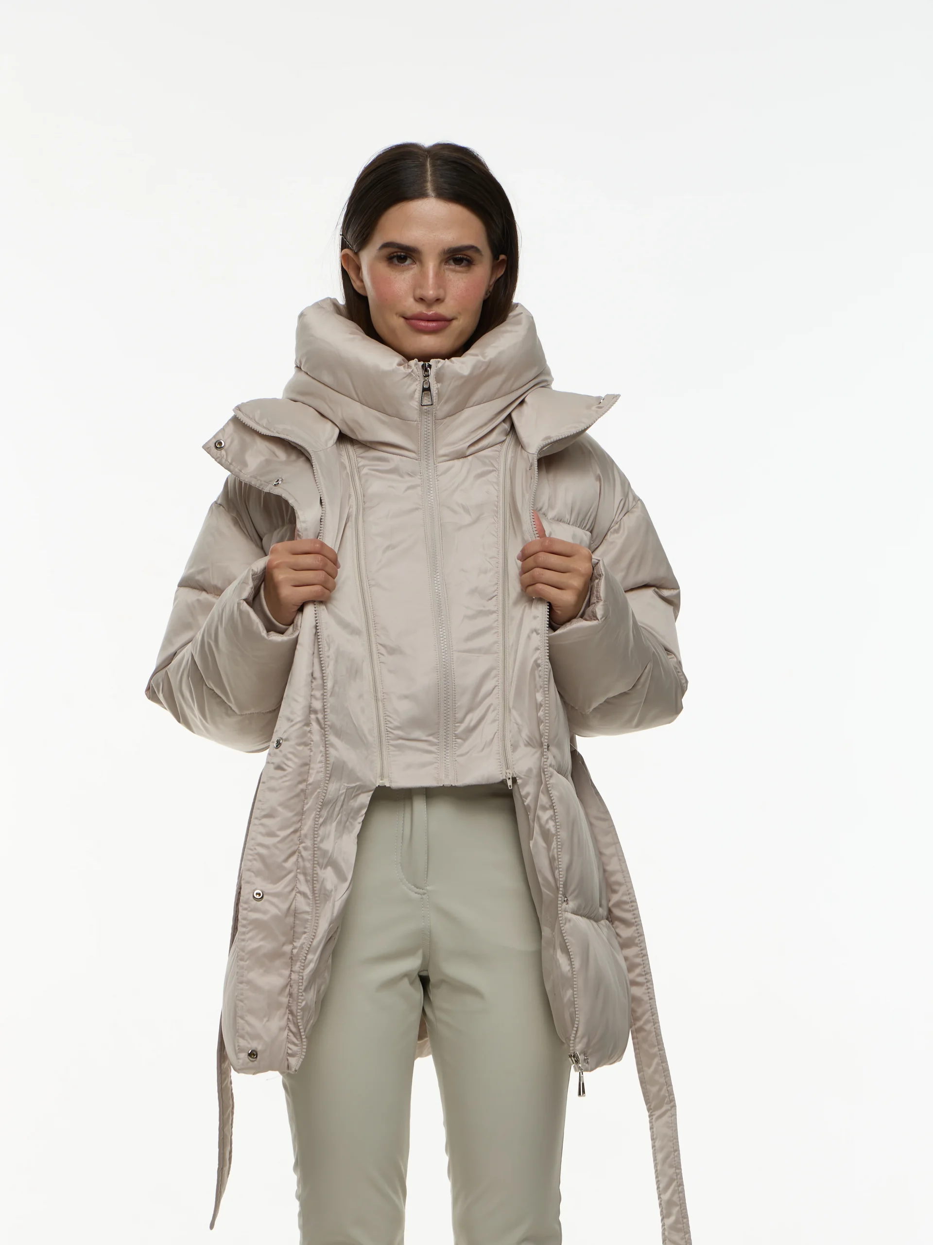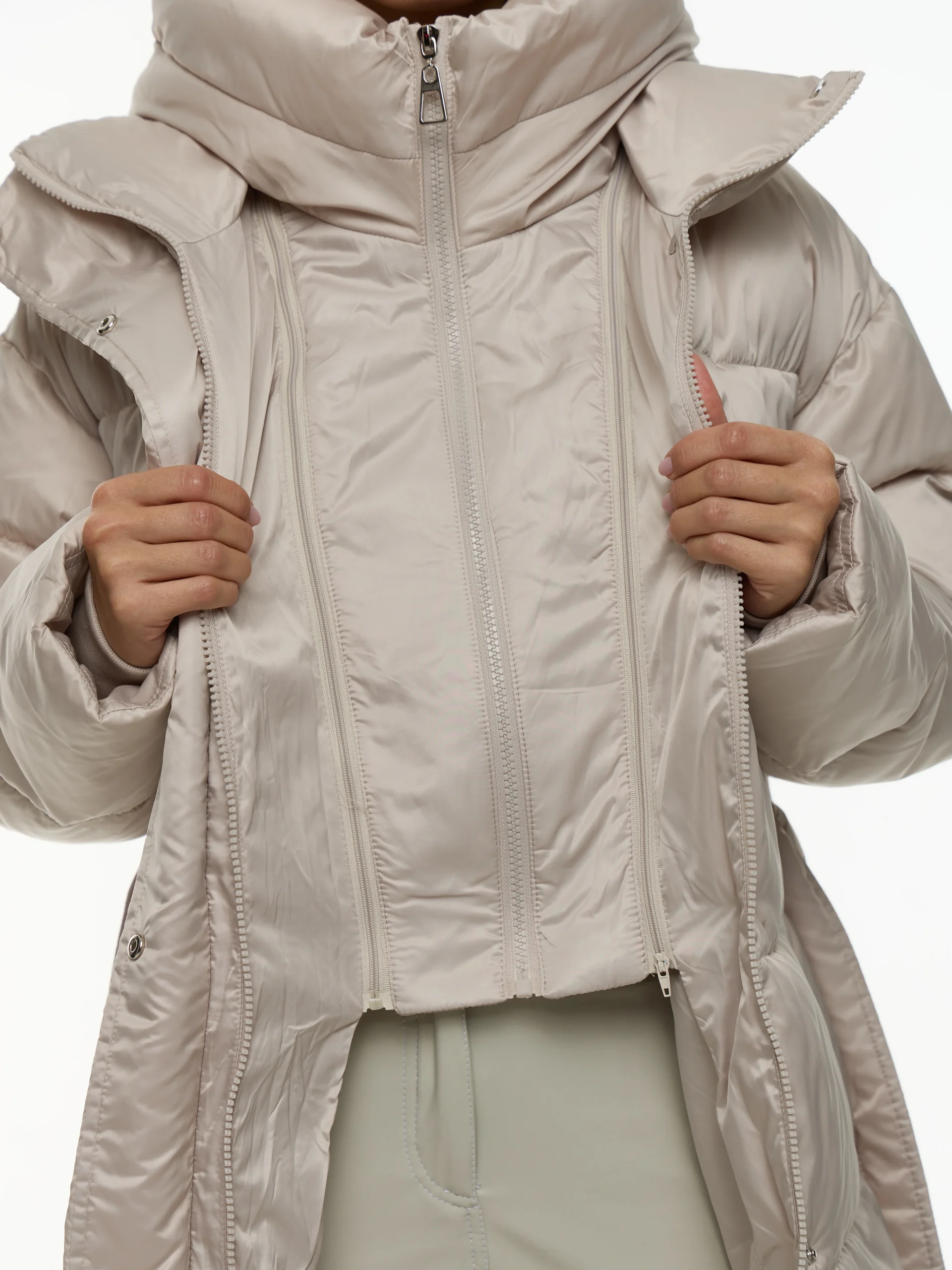 Женская куртка зимняя Жемчужный с манишкой