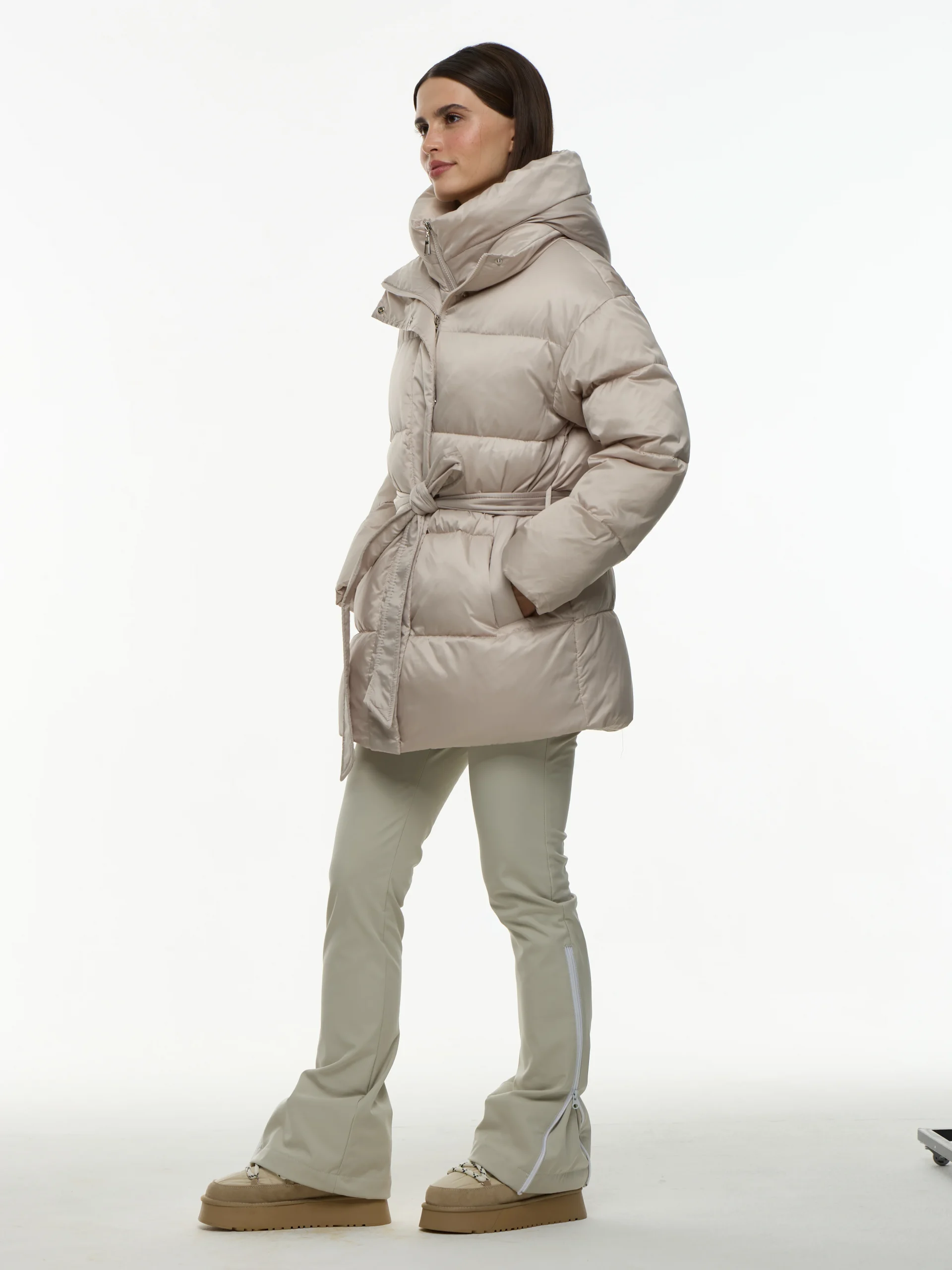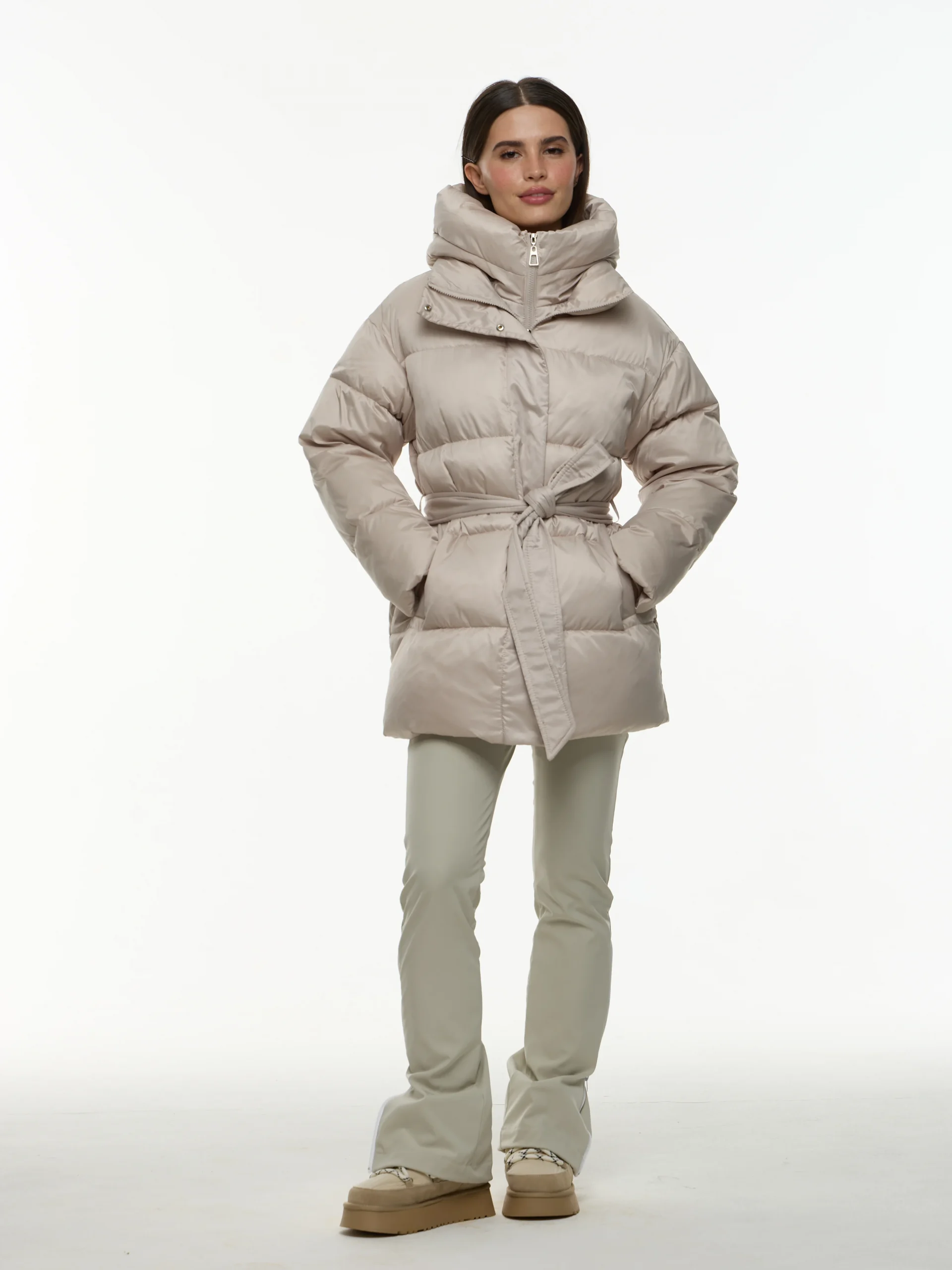 Базовая зимняя женская куртка с утеплителем биопух и курточной ткани с влагоотталкивающей пропиткой. Прямой силуэт, талия подчеркнуа поялом. Теплая и приятная к телу согреет до -20 градусов
