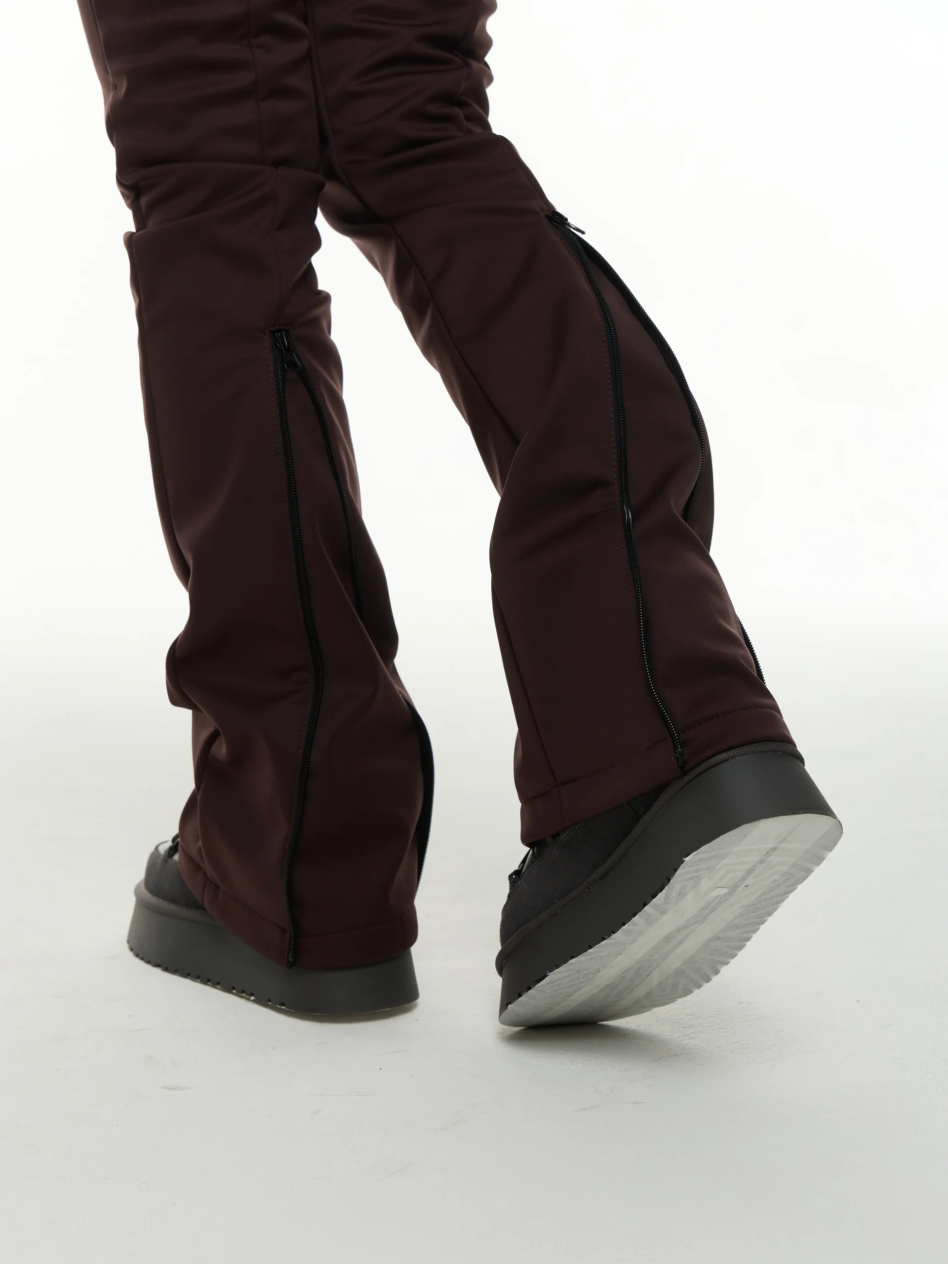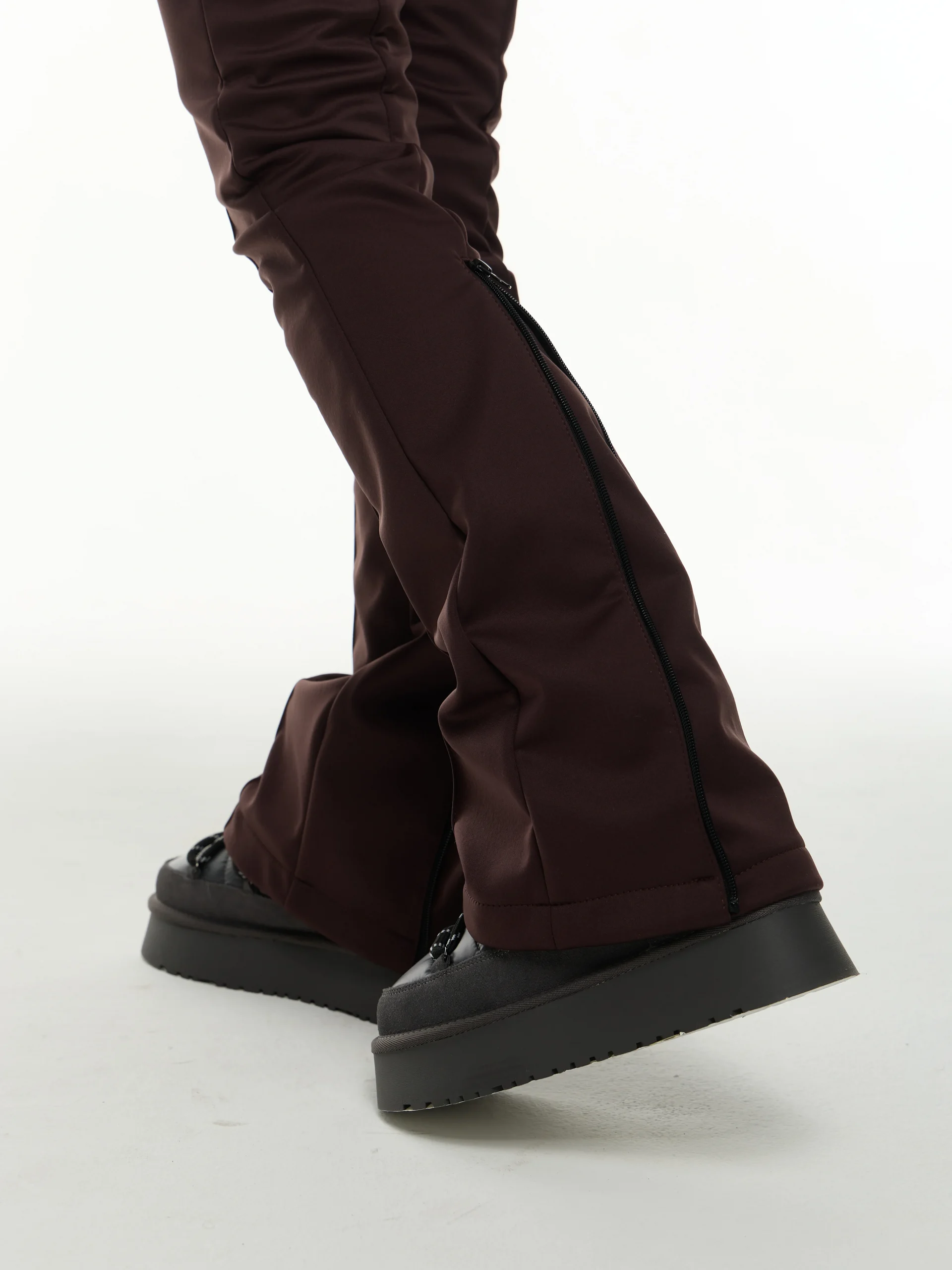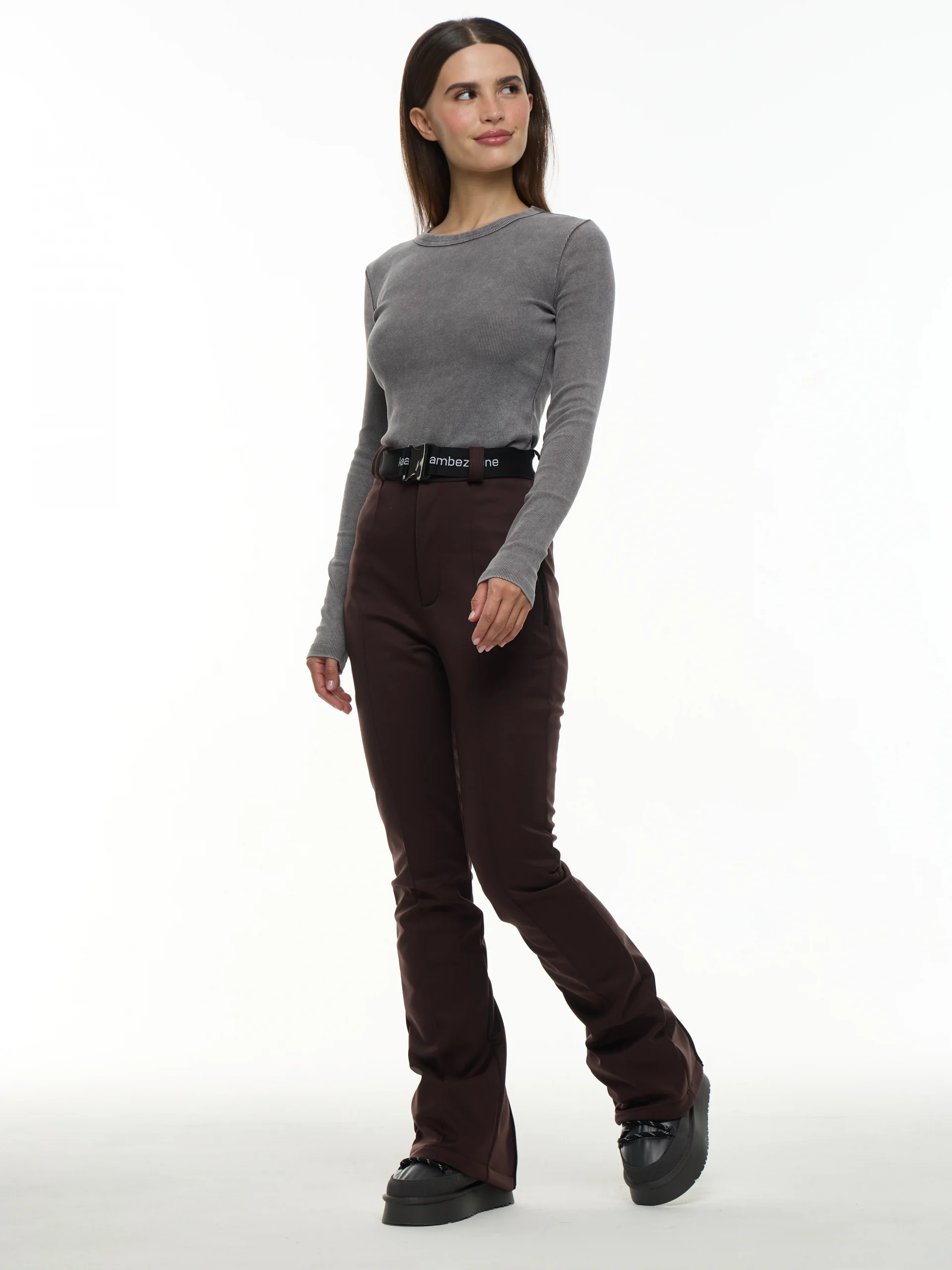 Брюки из софтшелла идеально подчеркивают фигуру за счет плотного прилегания, кокетка по спинке визуально формирует фигуру, силуэт легкий клеш увеличивается за счет горнолыжной молнии, высокая талия защищат поясницу от ветра и холода , брюки имеют очень удобную посадку.