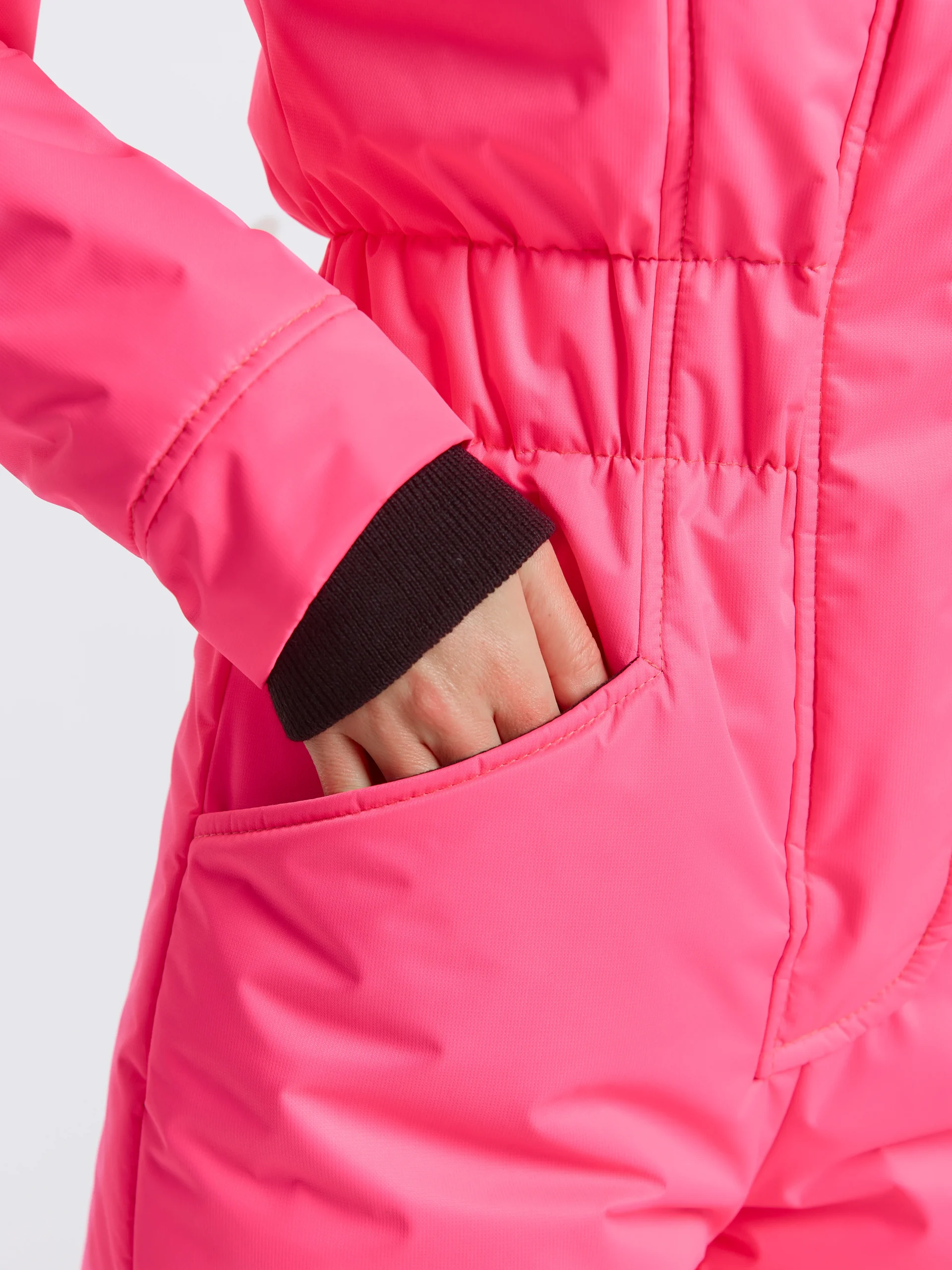 Представьте: вы гуляете зимой, занимаетесь спортом на свежем воздухе, а вам тепло и комфортно, как в уютном коконе. Секрет этого женского комбинезона – в уникальном сочетании материалов, создающих «эффект термоса». Мембрана защищает от ветра и снега, не пропуская влагу внутрь, но при этом позволяет коже «дышать», выводя лишний пар. Утеплитель холлофайбер создает воздушную прослойку, которая сохраняет тепло, а мягкий трикотажный подклад добавляет еще больше комфорта. Вы будете в тепле, но не вспотеете, даже во время активного движения! Комбинезон не только теплый, но и очень удобный. Высокий воротник-стойка защитит вашу шею от холода, а ветрозащитная планка на потайных кнопках не даст пробраться ветру и снегу. Удобные боковые карманы согреют ваши руки, а внутренний карман на молнии надежно сохранит телефон или ключи. Отстегивающийся капюшон с мехом позволит вам менять образ в зависимости от погоды и настроения. А трикотажные манжеты на рукавах создадут дополнительный уют и защиту от холода.
