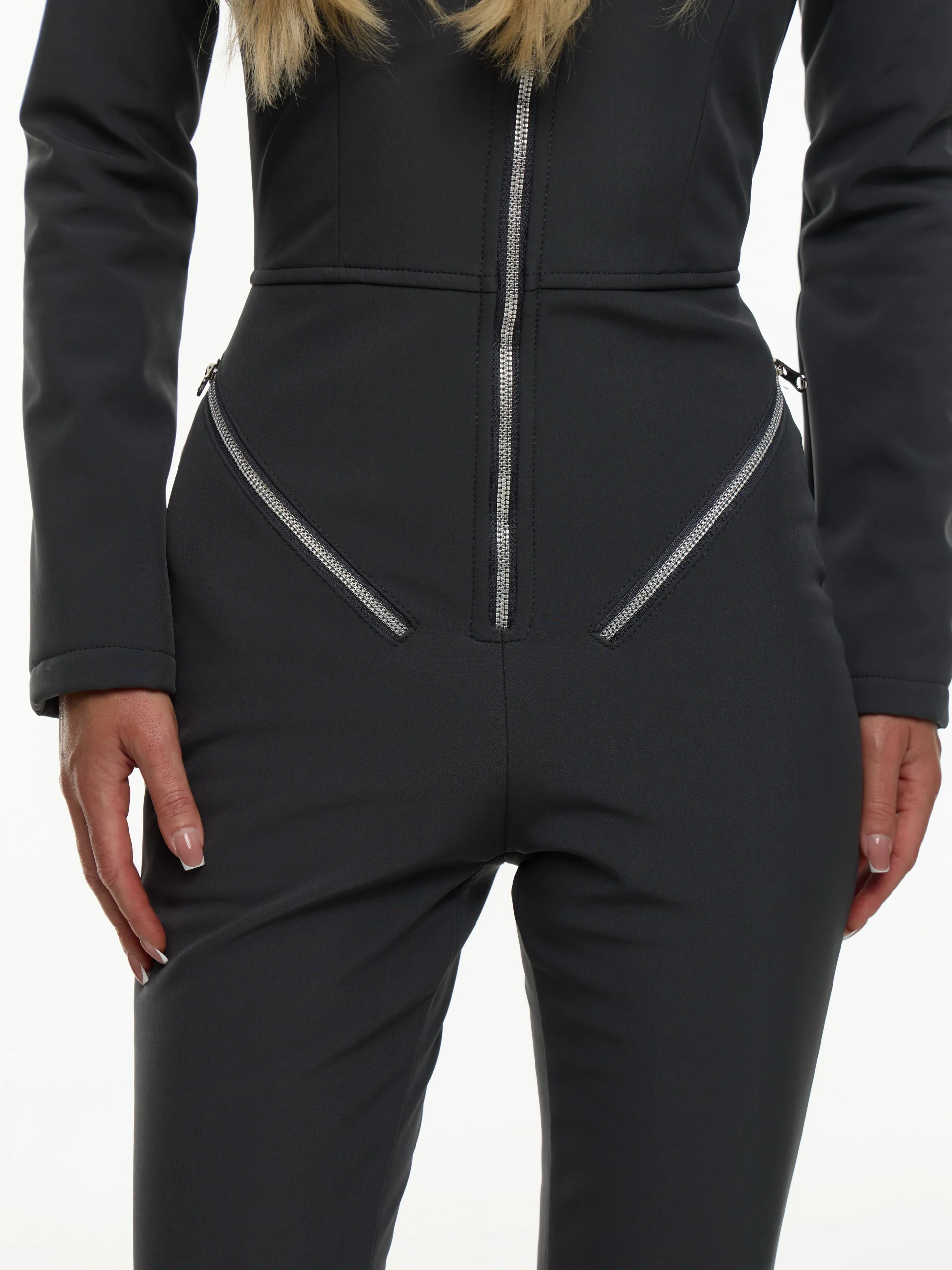 Этот комбинезон – универсальный солдат! Он отлично подойдет как для утренних пробежек, так и для повседневной носки. А если вы любите горные лыжи, то просто наденьте сверху короткую куртку – и стильный образ для покорения склонов готов! Комбинезон дополнен удобным •Этот женский комбинезон из софтшелла – настоящая находка для активных и стильных! Он идеально облегает фигуру, подчеркивая ваши достоинства, и при этом невероятно комфортный. Забудьте о дискомфорте во время пробежек или занятий спортом – материал «дышит», выводя лишнюю влагу, оставляя вас в сухости и комфорте. капюшоном, который защитит от ветра и непогоды. Контрастные вставки на плечах и спинке добавляют образу динамики и стиля. А специальный карман для ски-пасса сделает катание на лыжах еще более комфортным.
